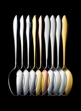 メッキや磨き加工、レーザー加工など、さまざまな加工方法により、皆さんのオリジナルカトラリーができます。ロゴ入れやメッキ加工により、オリジナリティあふれるカトラリーに変身。