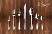 稲穂と月桂樹をモチーフにしたロココ調デザインの『Laurel月桂樹』は、燕職人が細部のデザインにまでこだわって仕上げた逸品です。ナイフには、フランス様式のカトラリーの特徴である”鎬(しのぎ)”と”目通し”が施されています。100年続く伝統技術を駆使したカトラリーは、現在も愛されるロングセラーです。