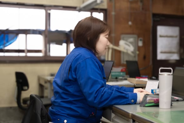 生産管理部に所属しています。 材料の発注から製造、検品、出荷までの流れを把握し、遅延や品質などのトラブルにも対応しています。